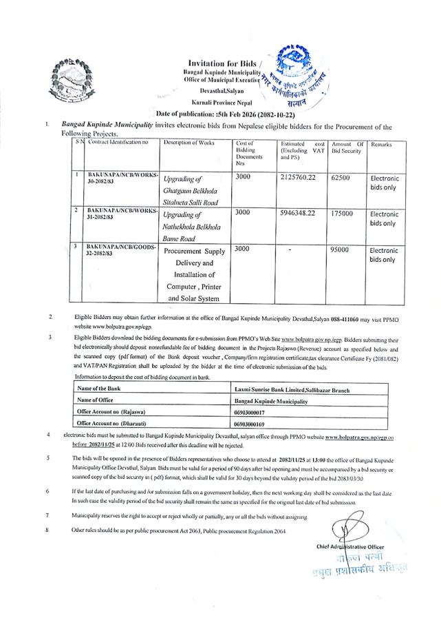 बोलपत्र आह्वान सम्बन्धी सूचना।