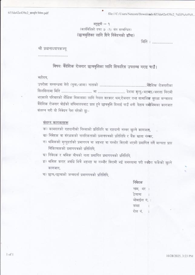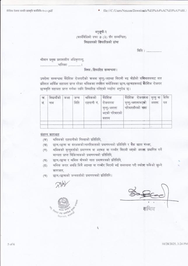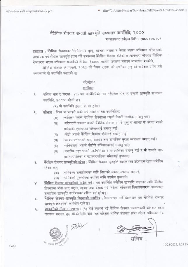 वैदेशिक रोजगार सन्तती छात्रवृत्ति कार्यक्रममा सहभागी सम्बन्धी सूचना।