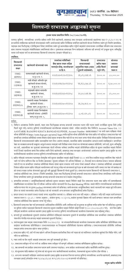 » सिलबन्दी दरभाउपत्र आव्हान सम्बन्धी सूचना।